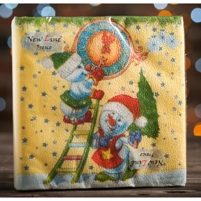 Фреско Салфетки 33*33 (20шт) 2-х сл. Снеговички в шарфах *20