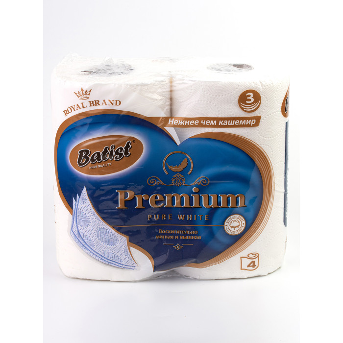 Бумага туалетная BATIST 3-сл. 4шт. Белая*12/12
