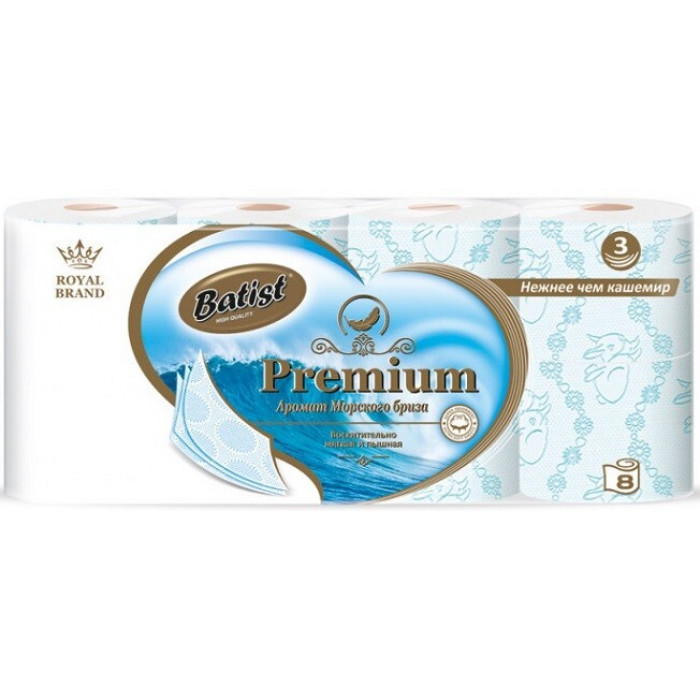 Бумага туалетная BATIST 3-сл. 8шт. Морской бриз*6