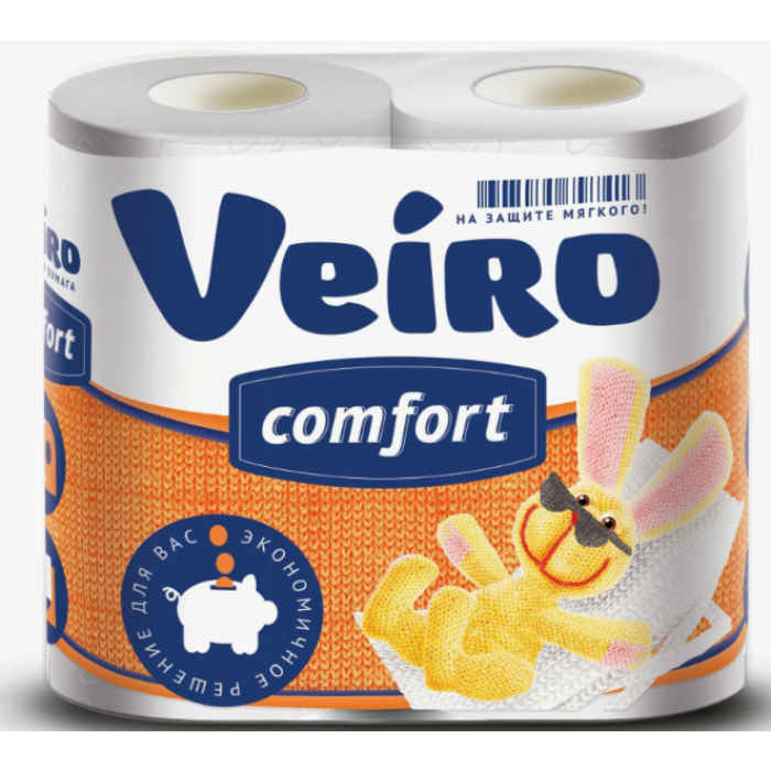 Бумага туал.Veiro 4рул. 2х-сл. Комфорт белая 5С24КОМФ 17,5м. 140 листов(5С24КОМФ) *12