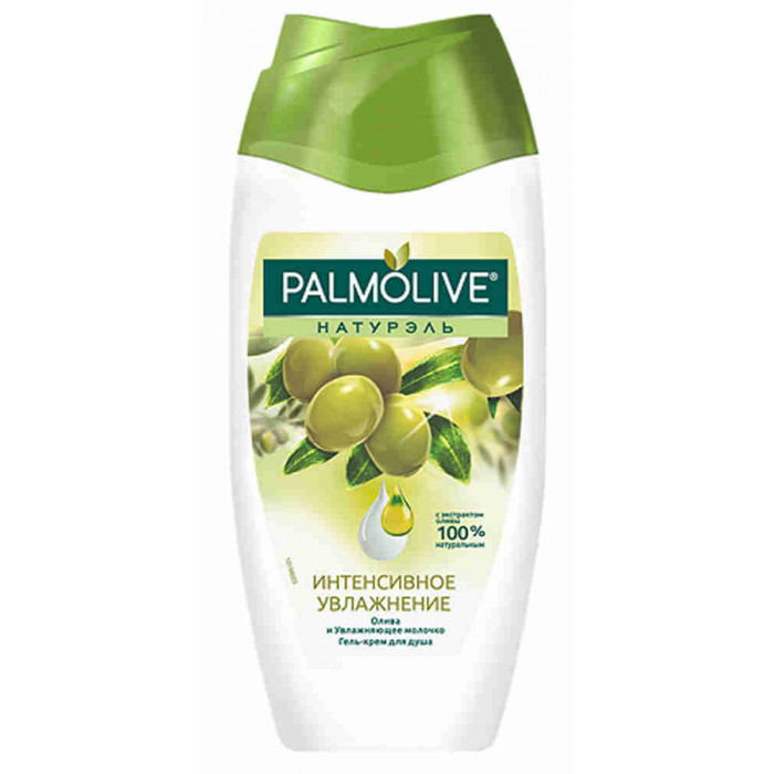 Palmolive Натурэль Интенсивное увлажнение с маслом оливы и увлажняющим молочком. Насыщенная бархатистая формула способствует увлажнению Вашей кожи и дарит ей ощущение необыкновенной мягкости и шелковистости. А Вам - неповторимое удовольствие. В состав входят натуральные ингредиенты: масло оливы, эфирные масла лимона, герани, апельсина, масла шалфея мускатного, листьев эвкалипта душистого, ингредиенты из кокосового и пальмого масел.