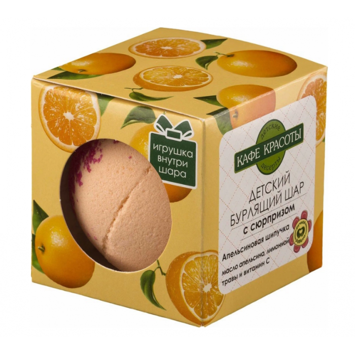 Кафе Красоты ДЕТИ Шарик д/ванны бурл.с сюрпр.-игр.Апельс.шип..120 гр *3*24