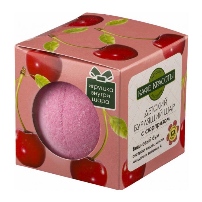 Кафе Красоты ДЕТИ Шарик д/ванны бурл.с сюрпр.-игр.Вишневый .шип..120 гр *3*24