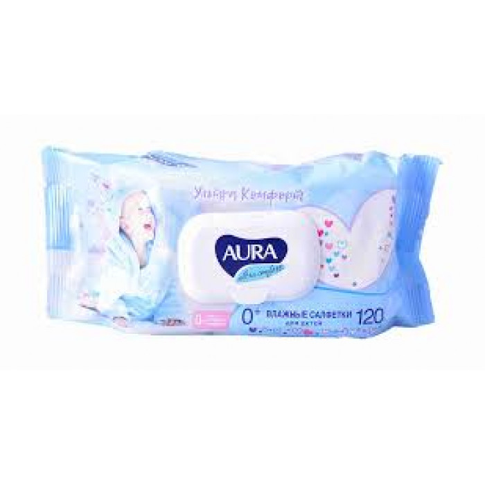 Влажные салф. AURA Comfort 120 шт д/детей Алоэ с витамином с крышкой *6/12