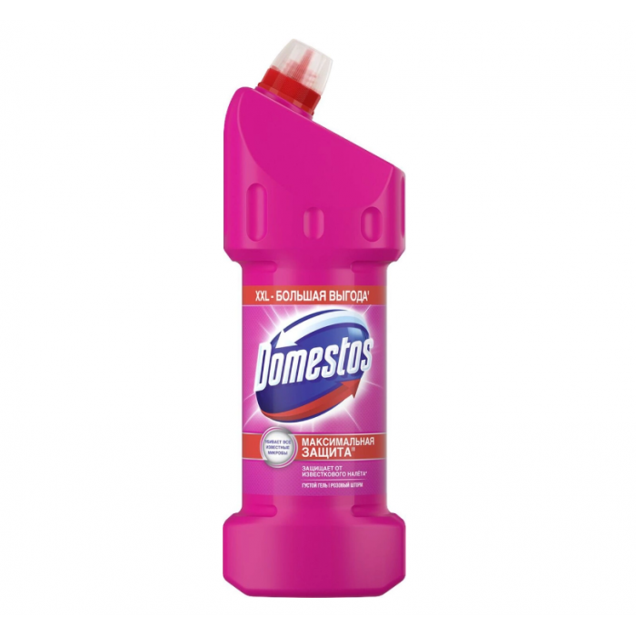 Универсальное чистящее средство Domestos Розовый Шторм, 1,5 л Хотите обеспечить блестящую чистоту и защиту от микробов быстро и надолго? Универсальное средство Domestos Розовый Шторм - это эффективный чистящий гель, который уничтожает 100% известных микробов во всем доме для защиты вашей семьи. Новый формат Domestos 1500мл избавит вас от необходимости частых покупок. Его хватит надолго, при этом он удобен в хранении. Более того, приобретая Domestos 1500мл, вы получаете существенную выгоду в цене за мл: -25%! Средство Domestos универсально и подойдет для уборки всего дома. В неразбавленном виде средство можно использовать для очищения и дезинфекции унитаза, ванны, раковины, стоков и сливов, а в разбавленном - для мытья множества поверхностей (пол, кафель, плитка, рабочие поверхности на кухне) и даже для отбеливания белья. Дозатор обеспечит удобство использования. Благодаря особой формуле с дезинфицирующим эффектом и чистящими компонентами, Domestos убивает все известные микробы, максимально отчищает грязь и устраняет неприятные запахи. Уникальная формула геля Domestos предотвращает появление известкового налета. Густая текстура геля Domestos обеспечивает гарантированное очищение и убивает бактерии, грибки, вирусы и споры. Регулярно используйте Domestos для постоянной чистоты и белизны вашего туалета. Универсальное средство Domestos экономично и обеспечивает длительное действие.