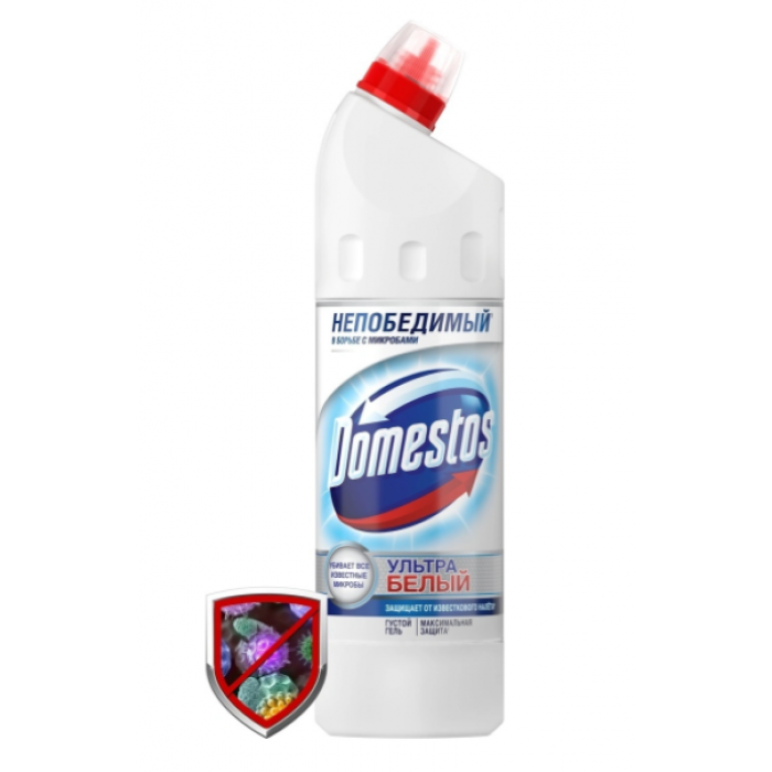 Хотите обеспечить блестящую чистоту и защиту от микробов в вашем доме быстро и надолго? Универсальное средство Domestos Кристальная Чистота - это эффективный чистящий гель, который уничтожает 100% известных микробов во всем доме для защиты вашей семьи. Средство Domestos универсально и подойдет для уборки всего дома. В неразбавленном виде средство можно использовать для очищения и дезинфекции унитаза, ванны, раковины, стоков и сливов, а в разбавленном - для мытья множества поверхностей (пол, кафельные поверхности, плитка, рабочие поверхности на кухне, мусорные ведра) и даже для отбеливания белья и тканей. А универсальное средство Domestos подходит для септиков. Ознакомьтесь с инструкцией по применению для каждого вида поверхностей. Благодаря особой формуле с дезинфицирующим эффектом и чистящими компонентами, Domestos убивает все известные микробы, максимально отчищает грязь и устраняет неприятные запахи. Уникальная формула геля Domestos предотвращает появление известкового налета. Густая текстура геля Domestos обеспечивает гарантированное очищение и убивает бактерии, грибки, вирусы и споры. Изогнутый дозатор обеспечит удобство использования. Регулярно используйте Domestos для постоянной чистоты и белизны вашего туалета и других поверхностей. Универсальное средство Domestos экономично и быстро обеспечивает длительное действие и защиту. Тысячи лабораторных тестов каждую неделю подтверждают, Domestos Непобедимый’. Безжалостное уничтожение микробов обеспечит дезинфекцию и чистоту в вашем доме.