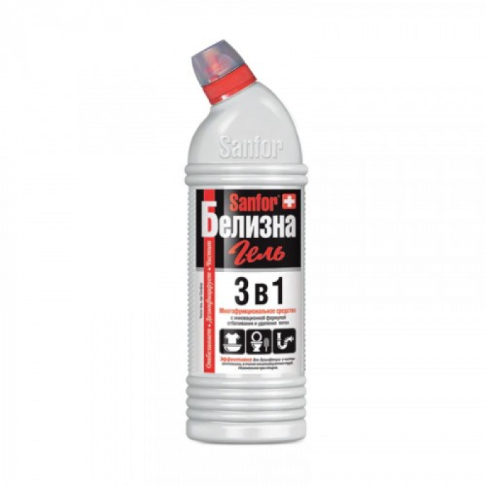 Специальное густое средство от "Sanfor" с инновационной формулой отбеливания и удаления пятен. Благодаря комплексному действию "3 в 1" незаменимо при стирке, а также для дезинфекции и чистки сантехники и труб.