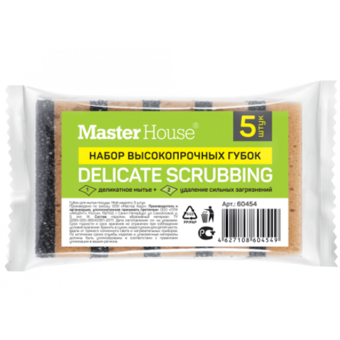 Губки для посуды поролон крупнопористый/абразив,88*54*30мм,МОЙ Надолго,5шт,60454/Master House