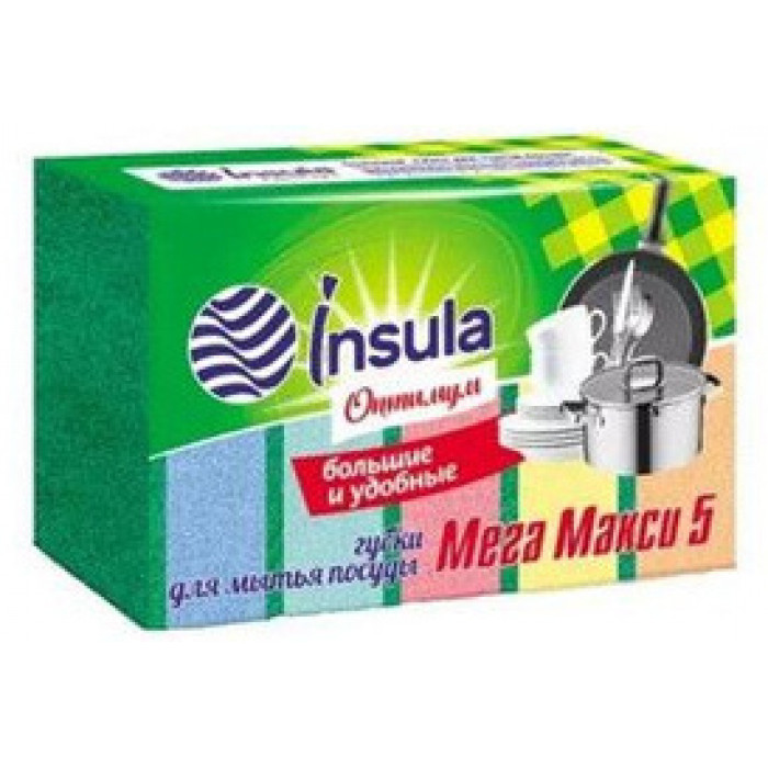 Губки для посуды поролон/абразив,85*55*25мм,МАКСИ Оптимум,5шт,991300/ INSULA