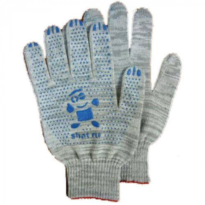 Перчатки х/б с ПВХ 4нит. 10класс, вес пары 50гр, серые Батареечка 5пар/уп, цена за пару E1M