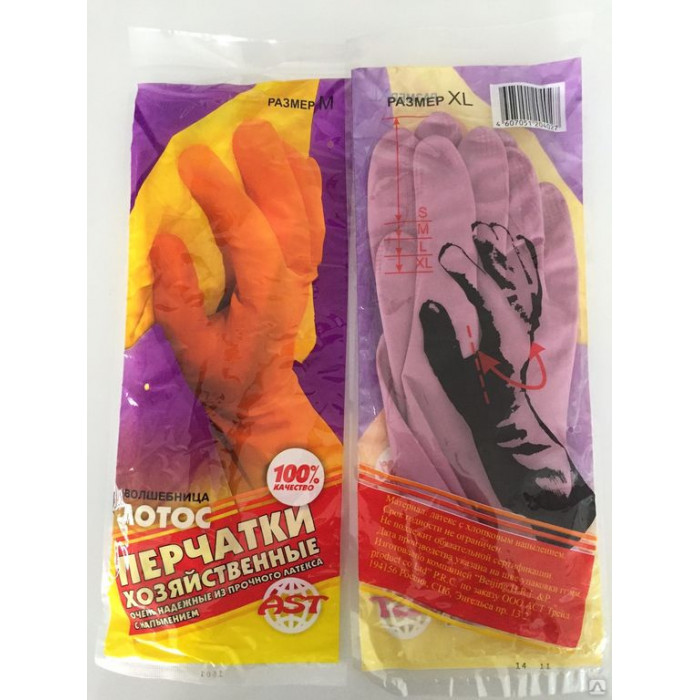 Перчатки хозяйственные латекс 75гр пара,31см,х/б напыление,рельеф,разм XL,Волшебница лотос,AST