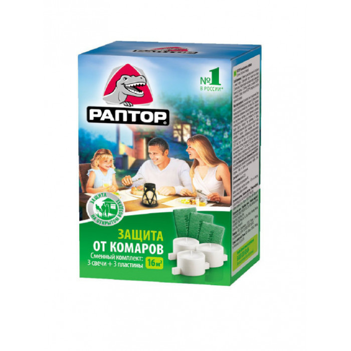 Сменный комплект для фонаря включает в себя 3 свечи и 3 пластины. Комплект обеспечивает защиту от комаров на открытом воздухе до 5 часов (время действия пластины) на территории 16-20 м2.