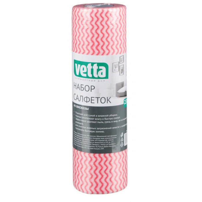 VETTA Набор салфеток из вискозы 30 шт в рулоне, 21х30см, 35г/кв.м., 3 цвета