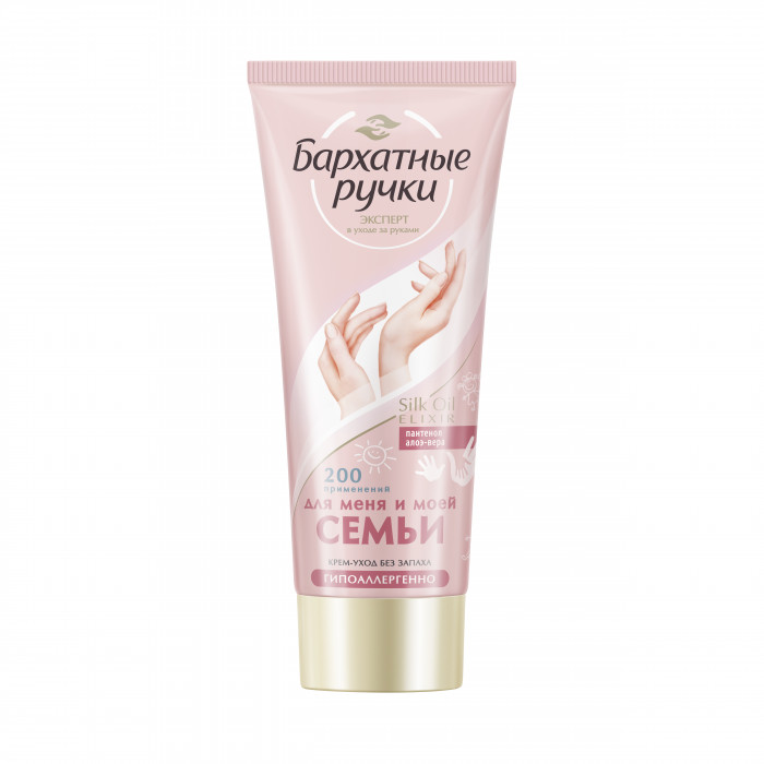 Мягкая гипоаллергенная формула крема «Бархатные ручки» Для меня и моей семьи разработана специально для ежедневного ухода за кожей ваших рук. Благодаря легкой текстуре, крем быстро впитывается, а отсутствие выраженного запаха и красителей обеспечивает комфортное использование для каждого члена семьи.