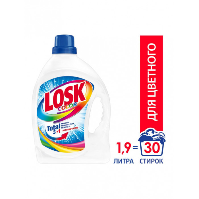 Гель для стирки LOSK Color Active-Zyme 6 для цветного белья - последнее поколение жидких средств для стирки LOSK, содержащее 6 энзимов, которые эффективно справляются с различными видами загрязнений. Гель для стирки содержит: -Эксклюзивную формулу Active-Zyme 6 с комбинацией из 6 энзимов для эффективного удаления различных пятен; -Передовую парфюм-технологию, дарящую вещам до 40% больше свежести* * По сравнению с предыдущей формулой жидких средств для стирки LOSK при хранении белья без использования. Результат стирки - чистота и свежесть вещей! Гель для стирки белья следует хранить, защищая от прямых солнечных лучей, при температуре от +5 до +35 С. Жидкое средство для стирки белья: - Эффективно стирает - Весит в 2 раза меньше порошка Жидкое средство для стирки белья удобно в хранении, дозировке и при предварительной обработке сложных пятен.